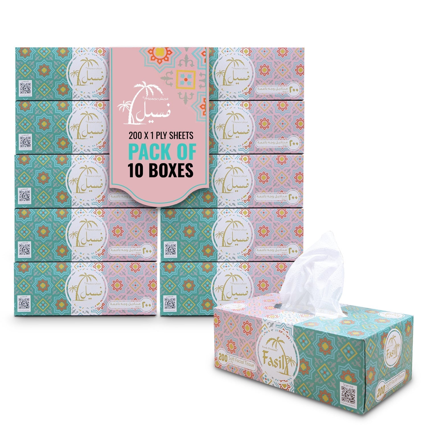 Fasil Facial Tissue 200 Sheets 1 Ply is the ideal choice for everyday hygiene and convenience. Designed to deliver a gentle touch with dependable quality, these tissues are perfect for a variety of uses. Whether for personal care, wiping surfaces, or quick cleanups, Fasil Facial Tissue ensures comfort and reliability in every sheet. With 200 sheets in each pack and a lightweight 1-ply construction, this product provides excellent value while maintaining softness and effectiveness.
