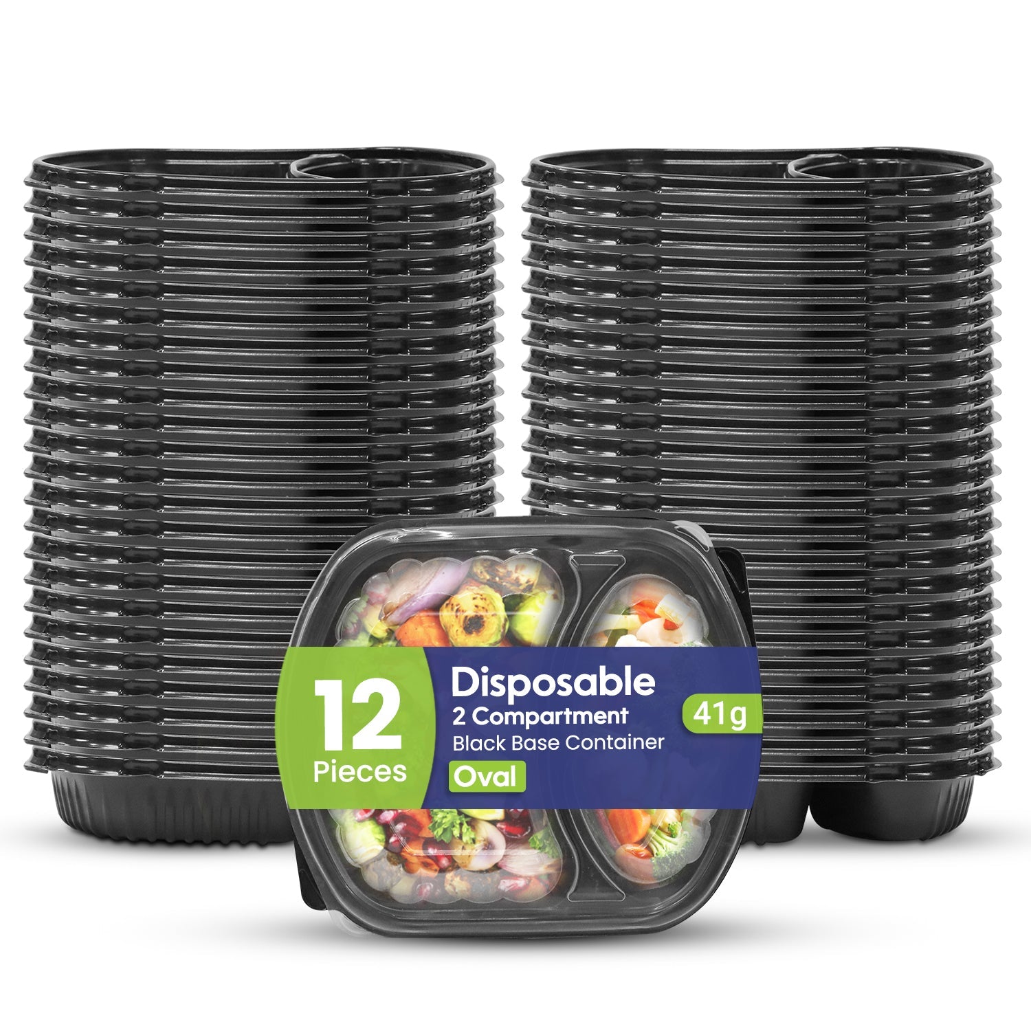 Oval Black Microwave Meal Prep Containers 2 Compartment With Lid