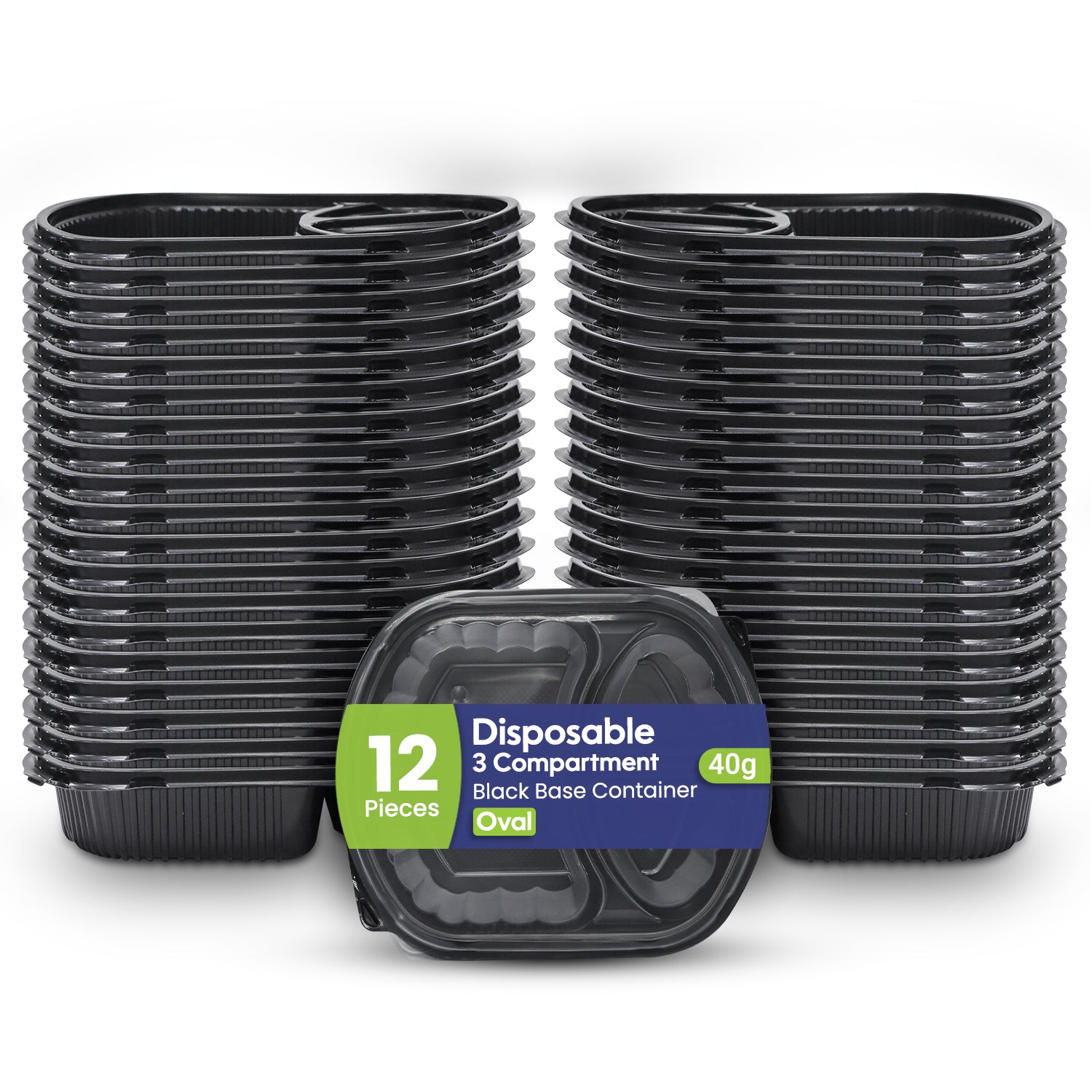 Oval Black Microwave Meal Prep Containers 3 Compartment With Lid