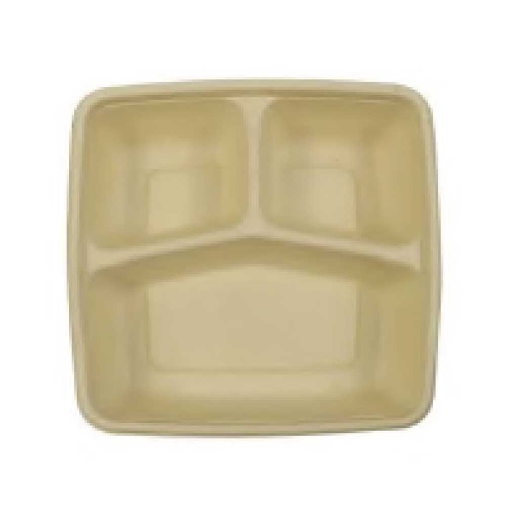 Bagasse 3 Compartment Container, is designed to provide ease of use while reducing your carbon footprint. Using these products in the microwave allows you to warm them up and serve them. This box is ideal for restaurants, caterers, and sandwich shops that prepare a variety of entrees, salads, and desserts, both hot and cold. Additionally, Eco Choice dinnerware is highly durable and won't crack or break even when moderate pressure is applied. Thanks to its oil-proof design, it can handle even the messiest food.