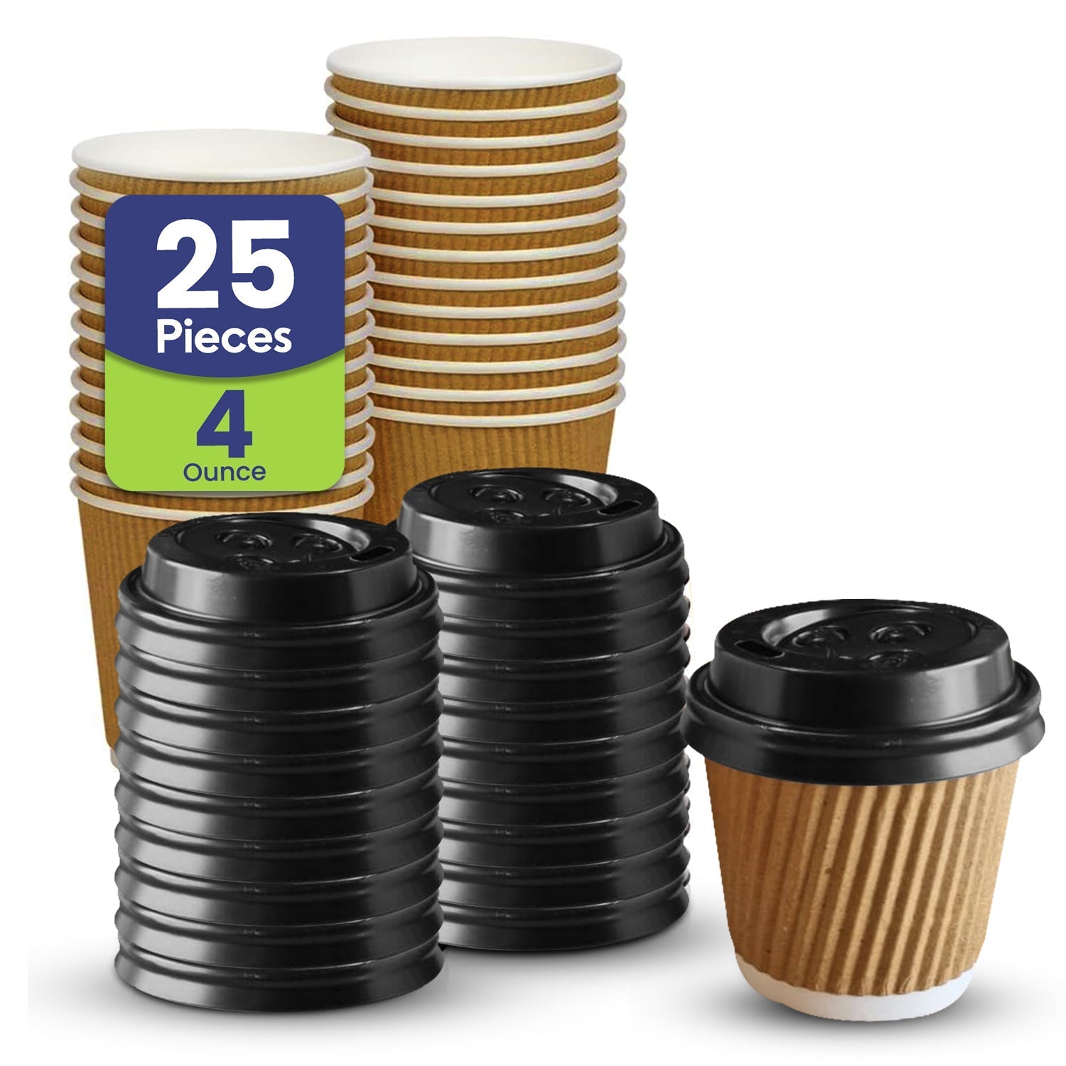 The Kraft Ripple Coffee Cup is a durable and eco-friendly choice for your coffee needs. The ripple design provides better grip and insulation, keeping your hands cool while your drink stays hot. Made from Kraft paper, these cups are biodegradable and perfect for takeout or home use. Upgrade your coffee experience with this set of 10 cups, each with a convenient lid.